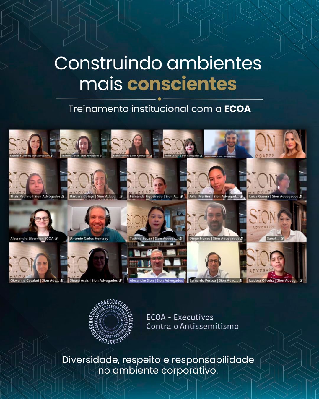 A Sion Advogados recebeu a ECOA – Executivos Contra o Antissemitismo para um treinamento institucional sobre temas relacionados ao antissemitismo, comportamento organizacional e responsabilidade no ambiente corporativo.